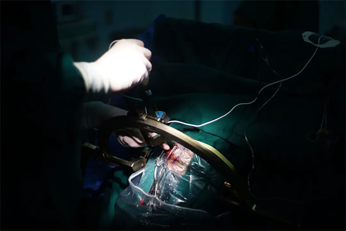 ▲ 为帕金森患者置入DBS, 先用瑞典ELEKTA固定支架