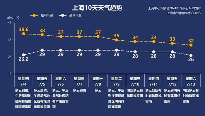 梅雨过后,高温来袭。本周开始,我国总体的天气形势发生大变化,雨热分布将随着副热带高压位置的改变“乾坤大挪移”。其中,前期多雨的江南和长江中下游地区将变得晴热起来。上海更是出现连续37~38℃的高温天气。