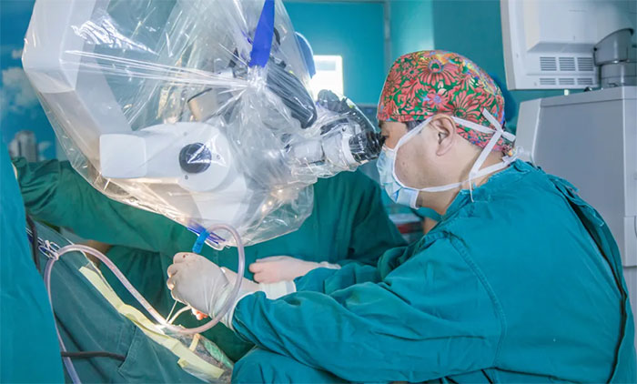 微血管减压术是现代神经外科典型的微创手术之一,仅通过患者耳后发际内4-5cm的切口,于显微镜下探查三叉神经走行区,将所有可能产生压迫的血管、蛛网膜条索都“松解”开,并将这些血管以Tefflon垫片与神经根隔离。一旦责任血管被隔离,产生刺激的根源就消失了,三叉神经核的高兴奋性就会随之消失,恢复正常。绝大多数患者术后疼痛立即消失,并保留正常的面部感觉和功能,不影响生活质量。