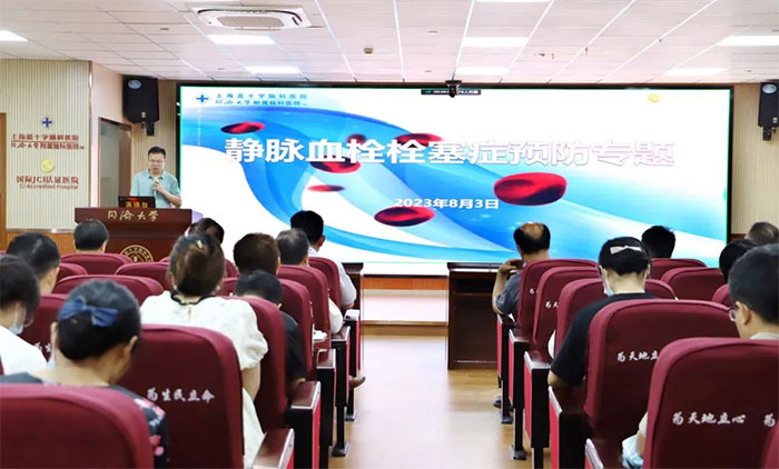 在医院及医务科的组织下,专门召开了相关人员“静脉血栓栓塞症防治培训会”,并在第九期蓝十字大讲堂上,开展了“静脉血栓栓塞症预防专题”主旨授课,持续推进院内VTE预防工作的开展,降低患者VTE的发生率,提高医疗质量,保障患者安全。