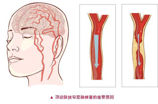 颈动脉粥样硬化斑块导致的颈动脉狭窄是导致脑卒中的主要原因。如果是不稳定性的颈动脉斑块,一旦斑块脱落会随着血液流向颅内,堵塞远端的血管,则可能会导致急性大面积脑梗塞,造成偏瘫,失语,半身不遂等,严重影响国民的身心健康,所以颈动脉狭窄一定要重视,早发现、早干预,是预防脑卒中的重要手段。