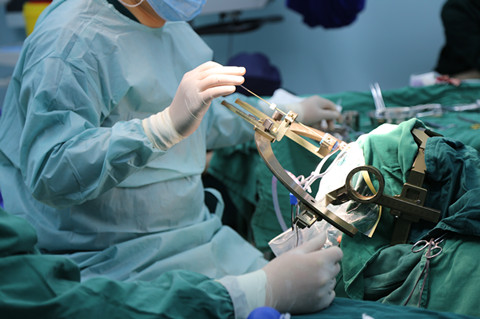 脑起搏器(DBS)术又叫脑深部电刺激术,手术过程采用局部麻醉,通过CT或磁共振(MRI)检查定向架位置,并根据需要,帮助医生获得植入脑起搏器部位的定位数据,根据前面的定位找准刺激部位后,把电极放进大脑。植入电极后,医生会进行初步的测试,然后根据患者的感受和症状改善程度 ,进一步调整电极的位置和刺激强度,以取得较佳效果。 如果测试中症状得到控制,医生可进一步植入整个脑起搏器系统,植入体内的部件不会影响病人的日常生活。