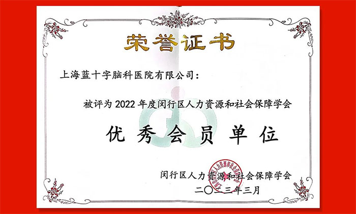 2023年3月16日,闵行区人力资源和社会保障学会第七届理事会第五次扩大会议顺利召开。会议审议通过了“关于表彰2022年度优秀学组、优秀会员单位、优秀工作者的知及表彰名单”。上海蓝十字脑科医院榜上有名,荣获2022年度“优秀会员单位”称号。