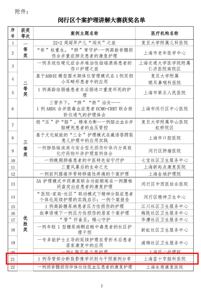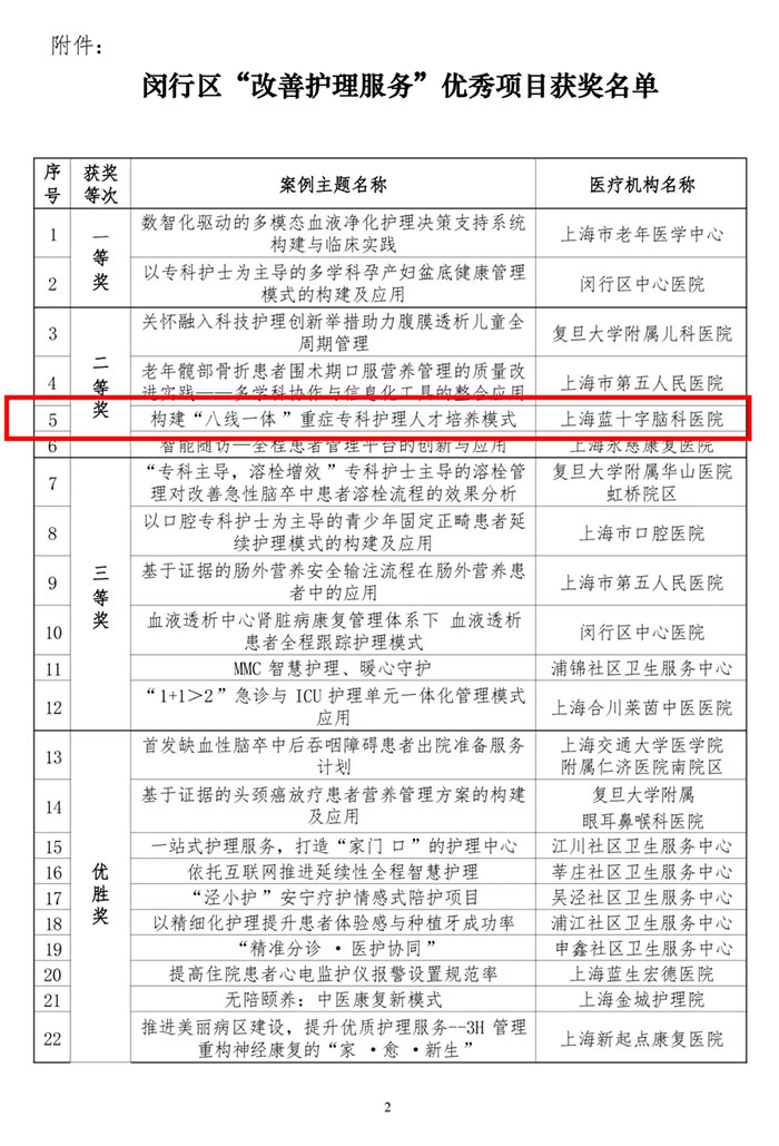 为深入推进医疗卫生高质量发展,切实解决群众就医过程中的急难愁盼问题,闵行区开展“改善护理服务”优秀项目评选,聚焦护理服务品质提升,优化护理服务模式,让优质护理更加贴近患者需求。经综合评估和专家评审,医院《构建“八线一体”重症专科护理人才培养模式》项目最终获得二等奖。