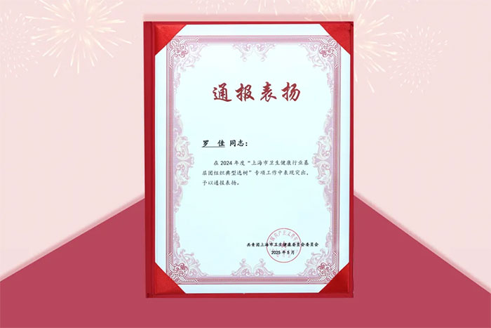 对标“政治站位高、组织基础牢、联系服务实、作用发挥强、规范建设好”的选树标准,上海蓝十字脑科医院【同济大学附属蓝十字脑科医院(筹)】团支部及团支部书记罗佳双双荣获团市委通报表扬。