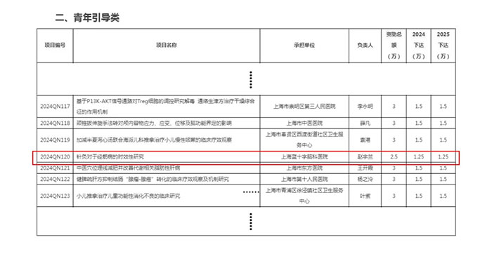 上海蓝十字脑科医院【同济大学附属上海蓝十字脑科医院(筹)】承担的“针灸对于经筋病的时效性研究”科研课题,此次被列入“青年引导类”项目,并根据专家评审情况确定资助经费。