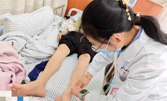 ▲ 赵宇兰医生为经筋病患者进行针灸治疗