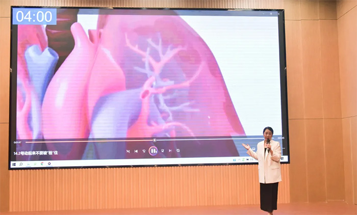 《动起来,不要被“栓”住》凝聚了医院护理团队的智慧和努力,以预防“血栓”疾病为主题,以“深静脉血栓(DVT)”真实事例为切入点,通过视频和现场讲解相结合的方式,展示了血栓的病因、危害、形成和预防常识,多角度地将深奥的专业医学知识进行生动鲜活的演绎。凭借精妙的创意及李兰馨护士长现场出色的演讲,让观众及评委产生了强烈的代入感和认同感,在53个作品中脱颖而出,获得“2024 年闵行区护理科普讲解大赛”三等奖的佳绩。