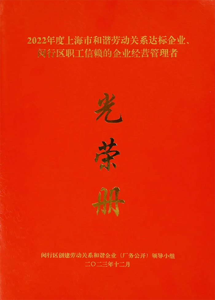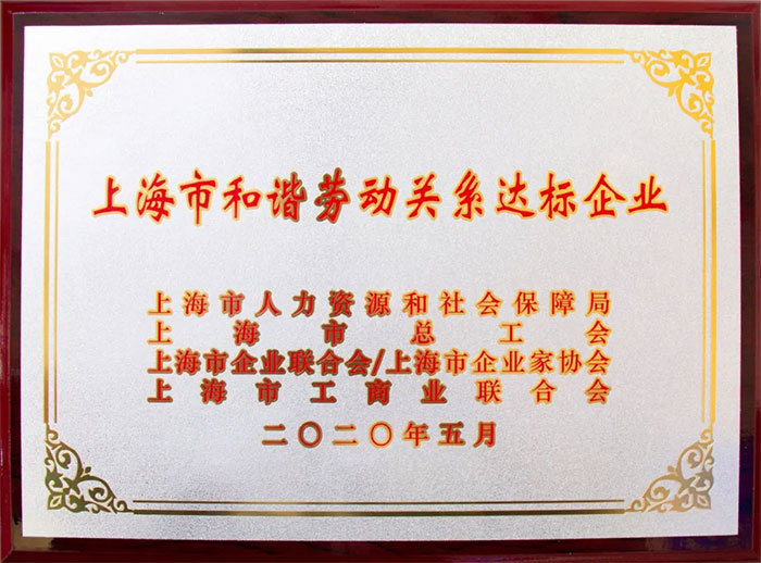 ▲ “上海市和谐劳动关系达标企业”荣誉牌匾