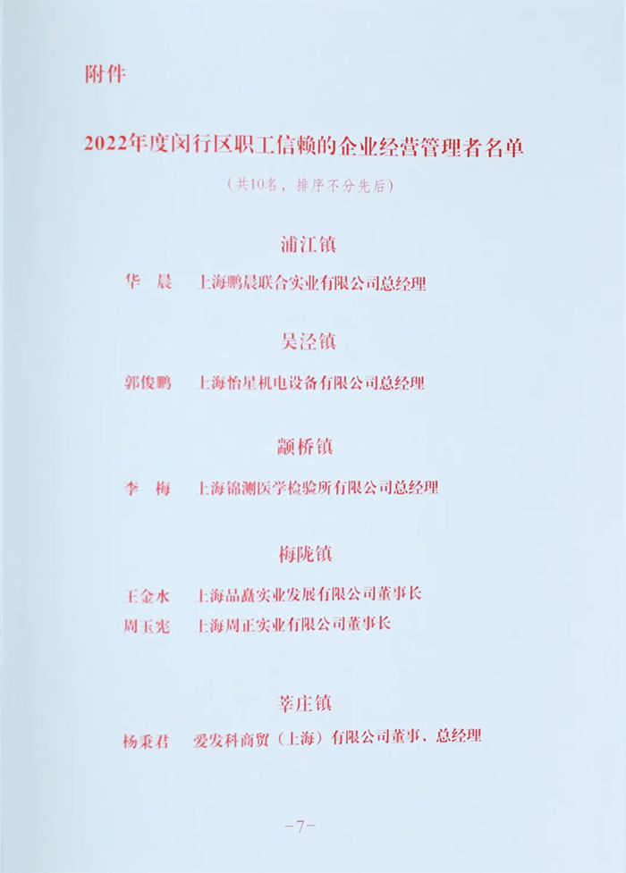 8月15日,属于朱敏书记“闵行区职工信赖的企业经营管理者”的奖杯收到啦!