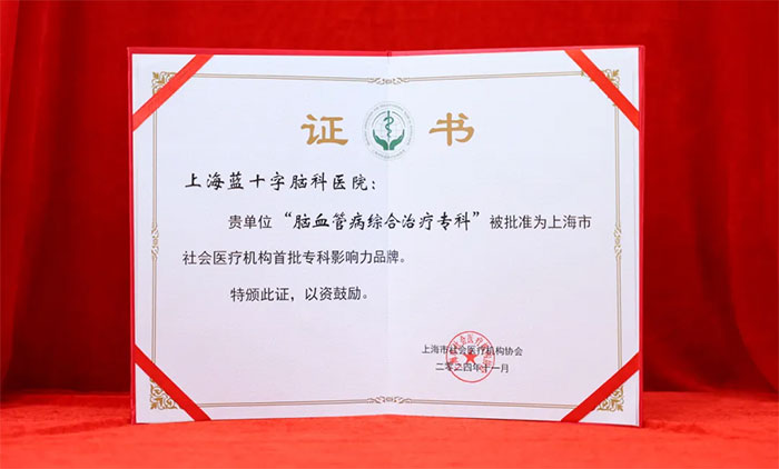 “专科特色鲜明,具有较强综合技术优势,具有一定知名度和影响力”,会上,上海蓝十字脑科医院【同济大学附属上海蓝十字脑科医院(筹)】脑血管病综合治疗专科荣获“专科影响力品牌”。