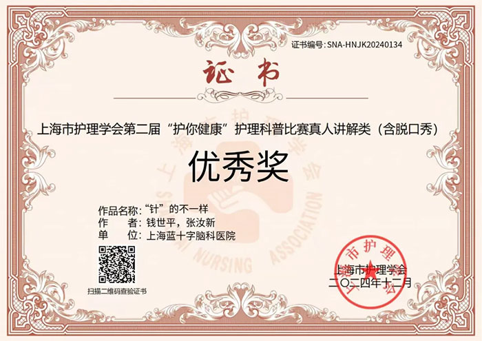 另一组参赛作品《“针”的不一样》(作者:钱世平、张汝新)荣获上海市护理学会第二届“护你健康”护理科普比赛真人讲解类(含脱口秀)优秀奖。