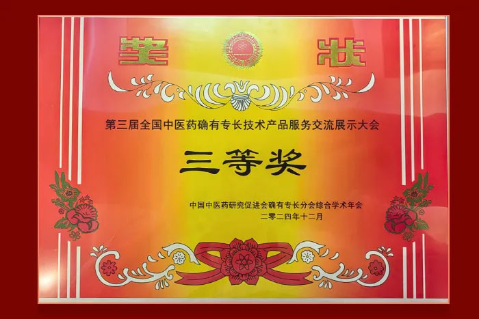 余志良博士精彩的大会发言,受到了与会同行的肯定。大家认为,紫荆刺血疗法是一种融汇传统和现代的创新技术,在临床具有可推广价值,可以造福更多有需要的患者。余志良博士因而获得了“第三届全国中医药确有专长技术产品服务交流展示大会三等奖”的荣誉奖状。