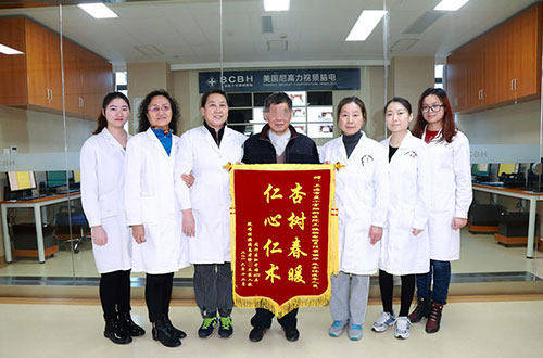 徐某父亲赠送锦旗,与主任等医务人员合影