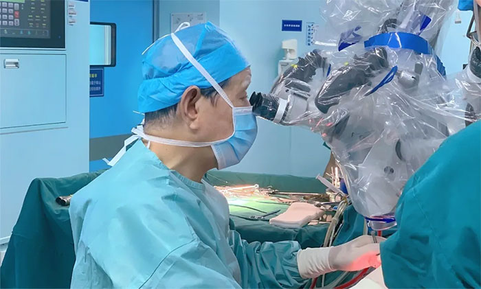 ▲沈教授开展显微镜下肿瘤切除手术