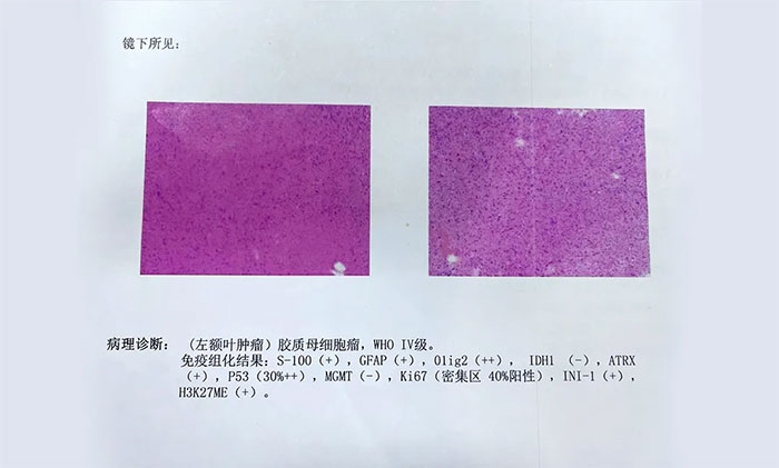 ▲病理诊断为胶质母细胞瘤