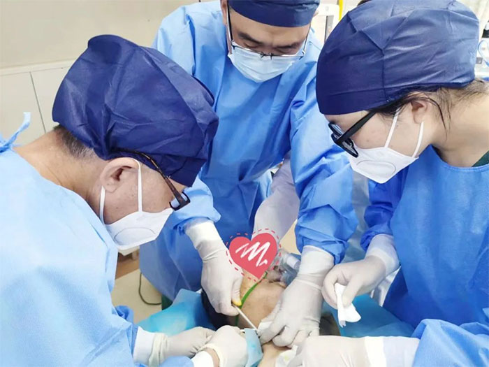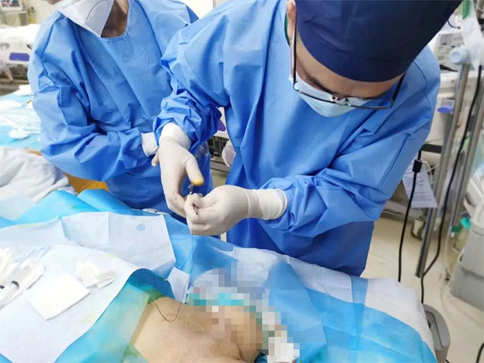 ▲ 张庆成主任团队正在为患者行透析长期导管置入术
