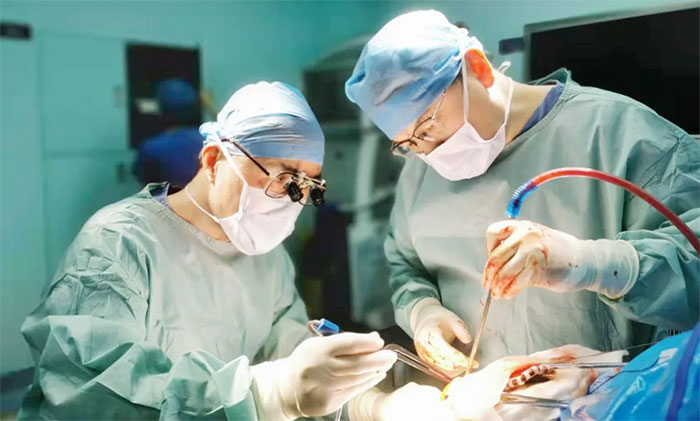 ▲ 顾国山教授(左一)正聚精会神为患者手术