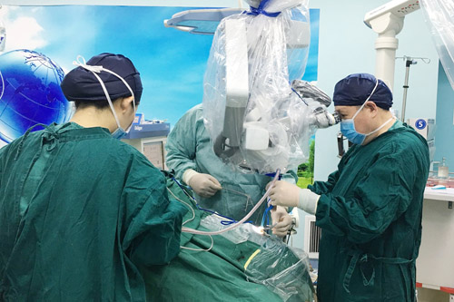 一切准备就绪后,2月23日下午,李先生被送进了手术室。麻醉顺利后,李士其教授采用“经鼻蝶窦入路垂体瘤切除术”微创手术方式。在双荧光显微镜下,李教授从患者右侧鼻腔入路,分块切除肉色肿瘤物,然后剥离取出。
