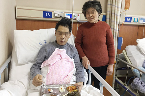 手术后不久,李先生已经可以坐起来吃饭了