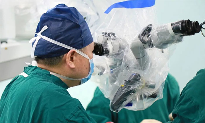经过详细的手术方案论证,充分完善术前准备,并经家属签字同意。2月22日,李士其教授在吴治群博士、尤国栋医生协助下,经鼻蝶窦入路为张先生展开了手术。