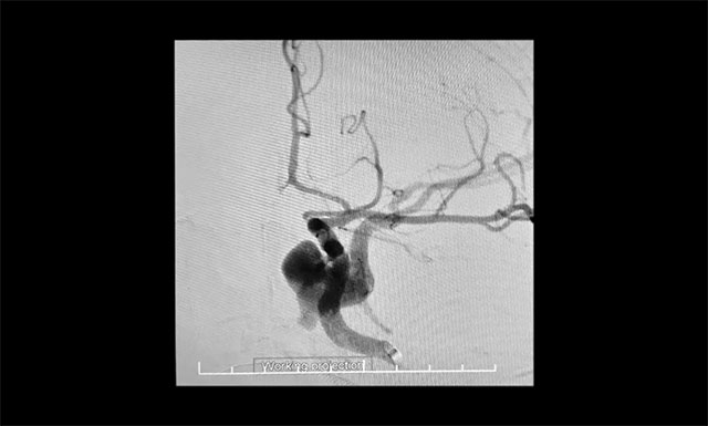 经过精心准备,在征得家属同意后,3月5日,张琪博士带领介入团队进行了“颈内动脉球囊保护+弹簧圈+onyx胶联合封堵术”(国际上惯称“钢筋混凝土技术”)。