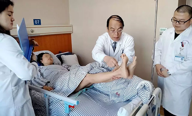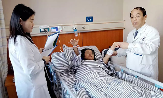 ▲ 查房时,患者的肢体已能灵活动作