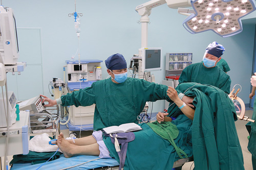 半小时后,患者被送出手术室,正在焦灼等待的家属看到爱人的手和腿都不抖了,一直悬着的心终于放下了。