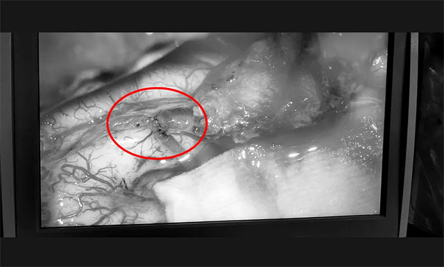 “这种针线在高倍镜下仍显得很细小。”张琪博士在刘春医生、周林华医生协助下,在显微镜下将颅外颞浅动脉游离后引入颅内,采用只有头发丝直径1/3的10-0吻合针线,与大脑中动脉分支行端侧吻合。随着时间一分一秒过去,大家全神贯注地注视着电脑屏幕,经过12针缝合,最终颞浅动脉和大脑中动脉成功吻合,松开临时阻断夹的时候,大家看到了顺利吻合的血管,无丝毫渗血。吻合完毕后,血管再通,搏动良好,手术成功,整个手术持续5个多小时。