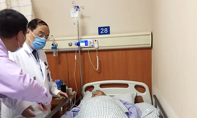 ▲ 潘仁龙主任查房,术后患者恢复良好