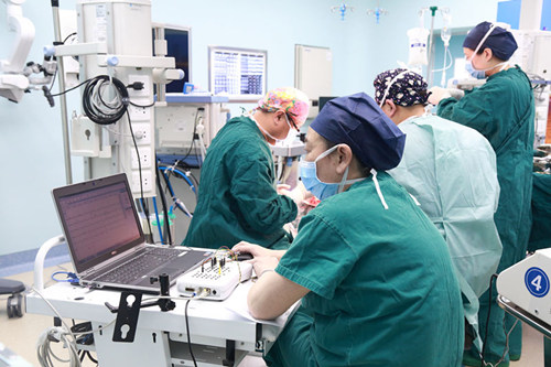 “为了手术的顺利进行,我们术前进行了反复监测,多次仔细评估,抓了几次发作,起源都是从左侧开始,然后我们一点点的缩小、锁定病灶范围,并且尽可能的精细化。”术前,脑电监测室的崔丽华主任团队费了很多功夫,凭着过硬的专业素养,最终基本锁定了病灶范围。