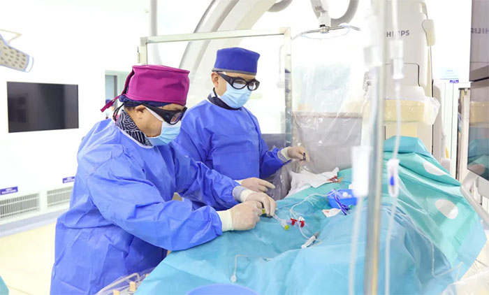 ▲ 席刚明教授、王贵平博士在为患者手术