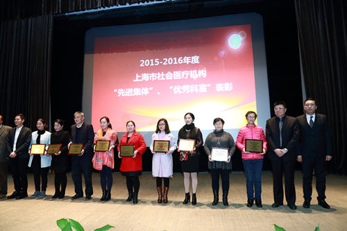 李鲁萍主任(右三)领取上海市社会医疗机构2015~2016年度“优秀科室”牌匾