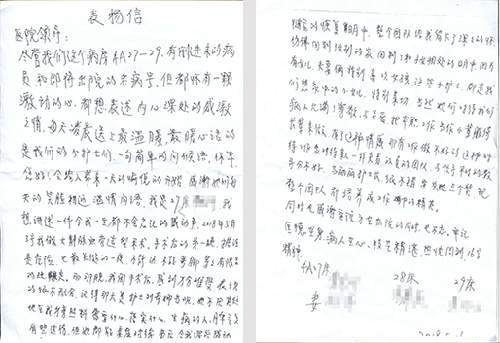 在这张普通A4纸写就的表扬信最后,与曹大叔的签名并列的,是同住一间病房的另外两名患者的签名。他们也想借着这个机会,对李世平主任、对刘奇娜以及整个神经内科的护理人员表达内心的感激之情。