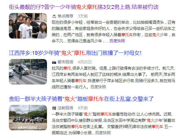 延伸阅读:“鬼火”摩托频酿悲剧