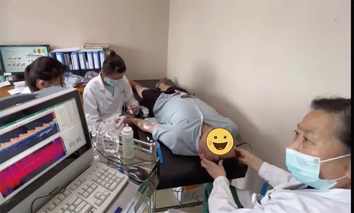▲ 崔丽华主任在进行经颅多普勒(TCD)发泡实验