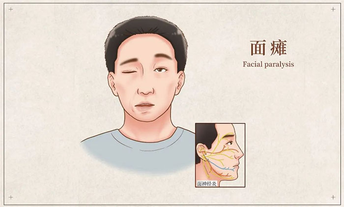 这是一种常见病,也即面神经炎,俗称面神经麻痹、“歪嘴巴”、“吊线风”,是以面部表情肌群运动功能障碍为主要特征的一种疾病。该病不受年龄限制,一般症状是口眼歪斜,患者往往连最基本的抬眉、闭眼、鼓嘴等动作都无法完成。“面瘫病属于中医‘口眼㖞斜’、‘口目僻’、‘口僻’等范畴。”