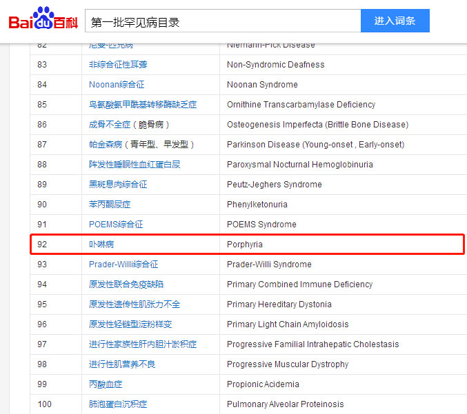卟啉病,对于大家来说非常陌生。事实上,它确实非常罕见——2018年5月11日,国家卫生健康委员会等5部门联合制定了《第一批罕见病目录》,卟啉病被收录其中。