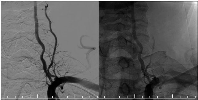 五旬男子左侧颈动脉狭窄伴左侧椎动脉支架内再狭窄