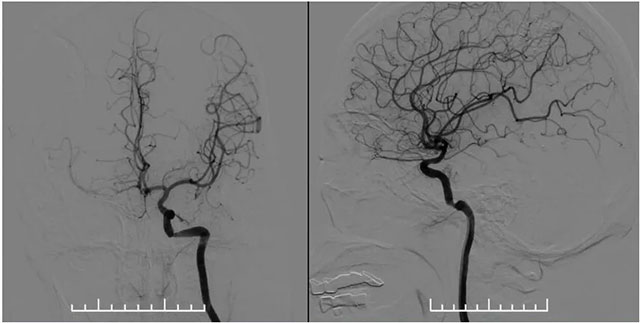 既往有“糖尿病”病史8年余,空腹血糖控制在10mmol/L。3年前因右侧脑梗死及颈内动脉血管闭塞,外院行右侧STA-MCA搭桥术+EDMS术,术后恢复一般,随后突发左侧肢体乏力,动作不能,言语含糊不清。就诊当地医院行相关检查提示左侧椎动脉狭窄,行左侧椎动脉血管支架术。行相关药物及康复治疗后,左侧肢体仍活动不利,言语功能较前恢复,之后出院。