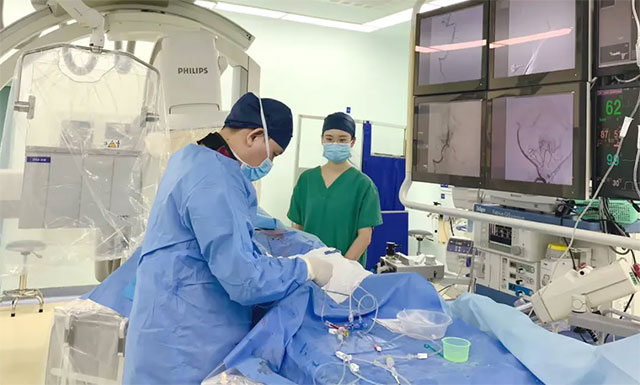 张琪博士指出,患者脑供血动脉严重狭窄,外院置入椎动脉支架内再狭窄再置入支架困难。综合患者病情,张琪博士决定为患者行左侧颈内动脉岩骨段狭窄球扩支架置入术+左侧椎动脉狭窄药物洗脱球囊扩张术。