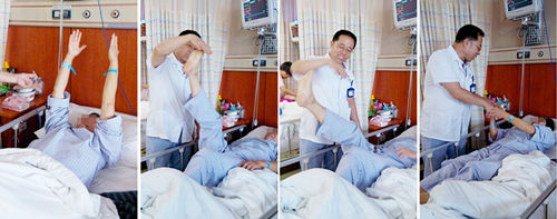 七月初的一天,80床的患者盛阿姨躺在病床上,精神状态很不错。李振并走进病房查看,示意她动动胳膊。盛阿姨轻松地举起了双臂,接着又轻松地先后抬起左右腿,还能和李振并主任进行简单交流。这些动作,对于这位五月份以来刚经历了多发性大面积脑梗、言语不清、右侧肢瘫痪的盛阿姨来说,几乎不亚于又一次涅槃重生。