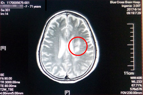 盛阿姨今年五月脑梗复发,在其他医院经过治疗后有所好转,在之后的康复治疗过程中病情又加重了,焦急的家属联系到了“蓝十字”。经过神经内科初步检查诊断,盛阿姨左侧侧脑室旁脑梗塞(急性期),脑干、双侧基底节区及额、顶叶多发腔隙性梗塞;大面积脑梗还造成了言语不清和偏瘫。入院时,右上肢肌力3级,左上肢肌力4级,双下肢肌力3级,因此无法行走,病情较重。