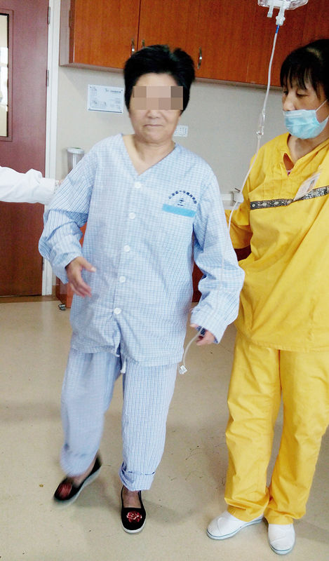 术后不到一个月,盛阿姨已经可以下地行走