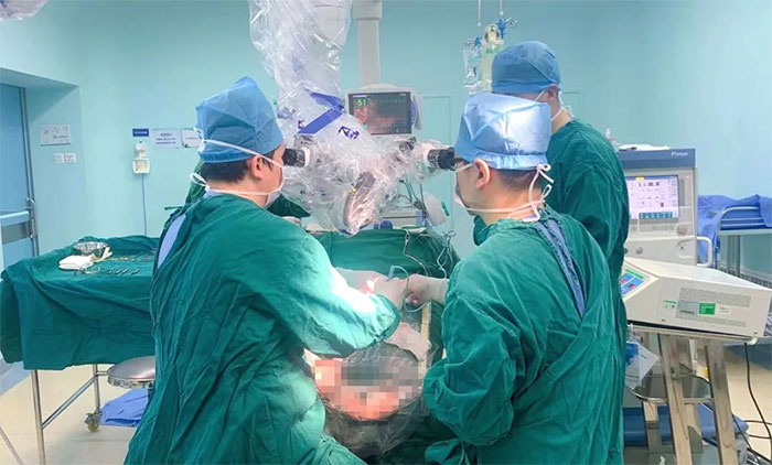 借助高精度的蔡司显微镜(双荧光),主刀医生探寻到合适的受体血管后,用肉眼几乎看不到的10-0吻合线,细密缝合薄如蝉翼的血管壁,进行“搭桥”。这种高难手术,缝合过程中医生连眼皮都不能眨一下,只要稍有不慎,都有可能引发严重后果。