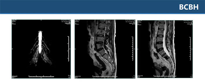 ▲ 双侧骶丛神经平扫+增强未见明显异常,L2、L4、骶S1-3椎体及其附件区多发异常信号影