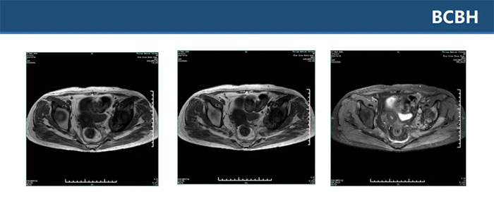 ▲ 双侧坐骨、髂骨、骶骨、左侧耻骨多发异常信号伴左髂骨髋臼处骨质破坏,考虑肿瘤性病变,转移瘤待排