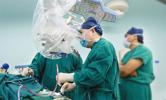 在制定详细手术方案并充分完善术前准备后,7月24日,李士其教授在吴治群博士、黄秀夫医生协助下经蝶窦入路成功为患者进行了手术。术中,在蔡司显微镜(双荧光)下,见淡红色肿物,质软,其外有包膜覆盖。李士其教授在充分保护好海绵窦、颈内动脉、视神经等结构前提下,将鞍内可见肿瘤全部切除,并留取肿瘤送检病理。手术顺利完成,术中只失血约10毫升。