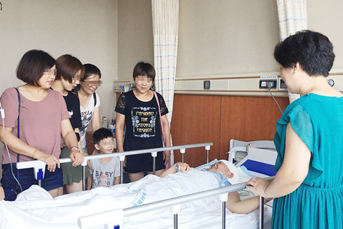 手术后,静静在ICU(重症监护室)待了两天,体征平稳后返回普通病房。大概是在ICU闷坏了,来到普通病房后,静静拿起手机就不放手。第二天,两个舅舅和舅妈从扬州驱车到上海探望她,小姑娘开心得不得了,直言想姥姥了,要快些出院回家看姥姥。