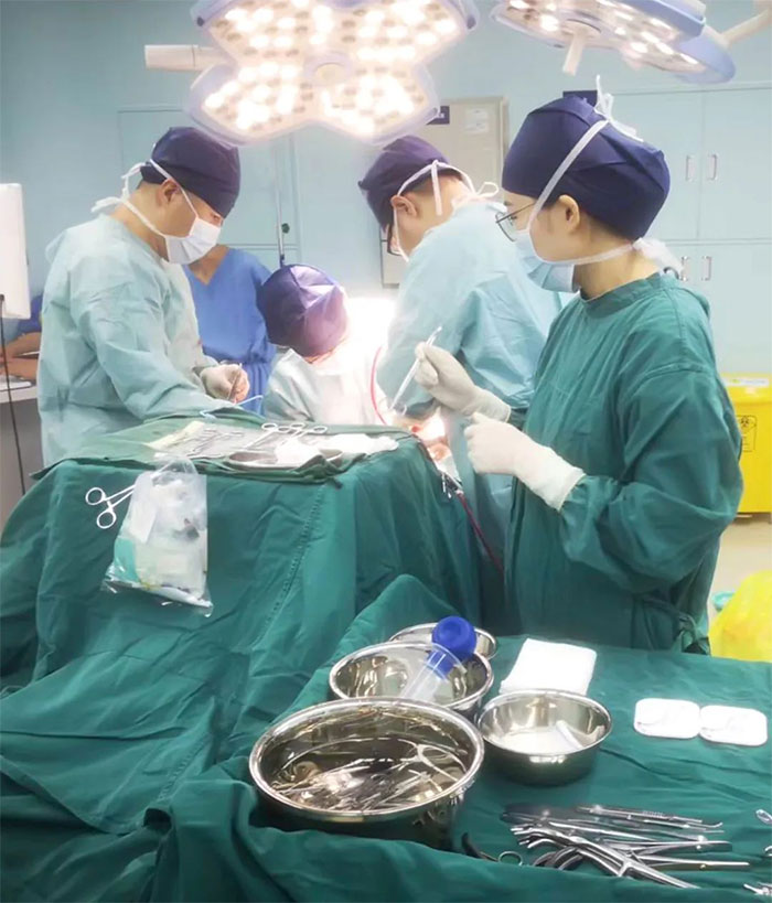 窗外天色阴沉,无影灯下手术医师、手术助手、器械护士们全神贯注,默契配合。顾不上中午饭,连上卫生间的时间都舍不得浪费,只为了尽快顺利完成手术,确保患者安全。